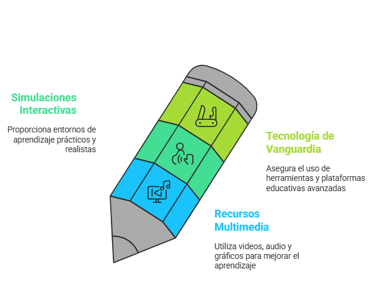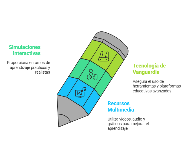 Nuestra plataforma virtual integra recursos multimedia, simulaciones interactivas y tecnología de vanguardia. Esto garantiza una experiencia educativa estimulante y enriquecedora, adaptada a las necesidades de los estudiantes.