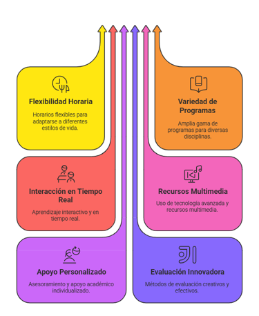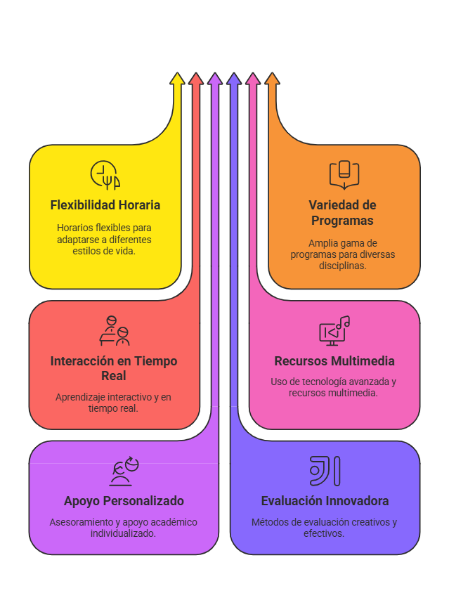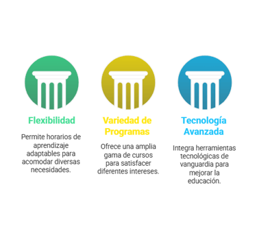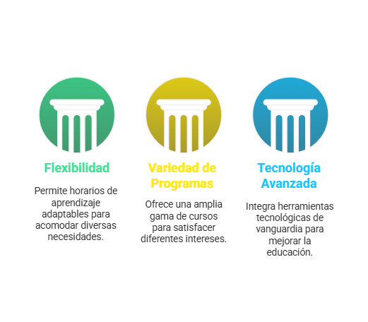 Las características más relevantes de nuestra oferta educativa, diseñada para adaptarse a las necesidades de los estudiantes modernos. Con un enfoque en la flexibilidad, la variedad de programas y el uso de tecnología avanzada, buscamos proporcionar una experiencia de aprendizaje enriquecedora y accesible para todos.