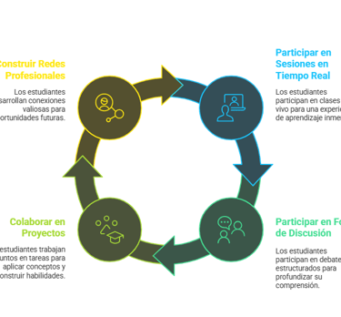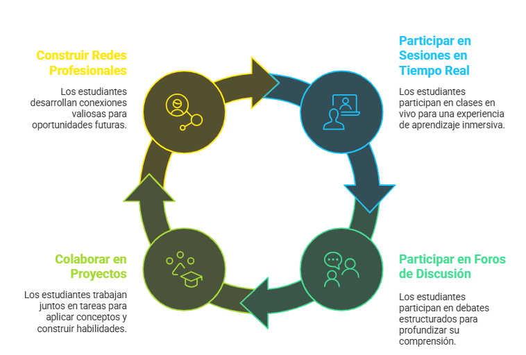 A pesar de estar en línea, la interacción con profesores y compañeros de clase es fundamental. Facilitamos sesiones en tiempo real, foros de discusión y proyectos colaborativos para fomentar el aprendizaje activo y la construcción de redes profesionales.